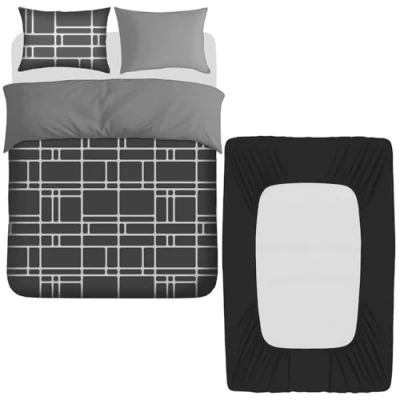 Premium Quality Fabric: Pamposh bedding sets are crafted with the finest quality microfiber material, double brushed on both sides for ultra softness and comfort. 4 Pcs Bedding Set: 1 x double duvet cover (200 x 200 cm) + 2 x Standard size matching reversible pillow cases (50 cm x 75 cm) + 1 x 40cm extra deep pocket black double fitted sheet (135 x 190 cm). Shrink and Fade Resistant: Expertly crafted to withstand shrinking and fading, ensuring long-lasting color retention wash after wash, providing you with a reliable and vibrant bedding solution. Quality Excellence: Every inch of this set meets top notch quality to ensure comfort, smoothness & durability. Extensive product research, inspection checks & ongoing factory audits for sustainability is a routine process at Pamposh. Oeko-Tex Complied: The Oeko-Tex compliance confirms no harmful materials or chemicals are involved in manufacturing of our bedding set. We have ensured highest standards in environment protection along with quality production. Care & Washing: Easy care and machine wash makes this quilt cover bedding set long lasting. Machine washable with cold water. Can be tumbled on low heat to dry. Do not bleach & dry clean