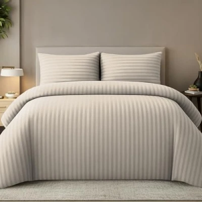 Pamposh Duvet Cover Sets Embossed Stripes Premium Hotel Quality Quilt Bedding Hypoallergenic Ultra Soft Microfiber Bed Linen (Taupe, King (Pack of 4))