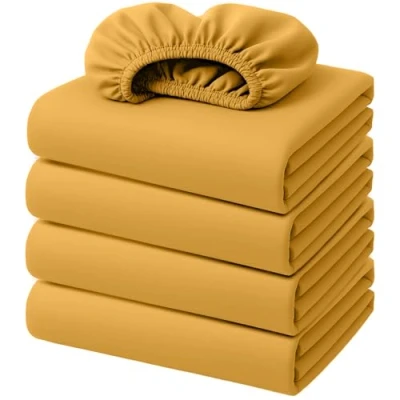 King Size Fitted Sheet Set Includes: 4 x king size fitted sheets (150 x 200 cm each) meticulously crafted from the finest brushed microfibre material for durability and comfort. Our extra deep king size fitted sheet boast an irresistibly soft texture, delivering a luxurious feel against your skin for a truly indulgent sleeping experience. Perfect Fit For Mattresses Upto 40 cm: Luxurious deep fitted king size sheet includes 4 fitted sheets are meticulously tailored for a snug fit in variety of colors. Bid farewell to loose corners and embrace a personalized sleeping sanctuary that remains securely in place throughout the night, Providing a seamless appearance and eliminating wrinkles. Extra Deep Pockets for Added Security: With deep pockets, our kingsize fitted bed sheets are designed to accommodate mattresses of varying thicknesses, including extra deep mattresses upto 40 cm / 16 inches. Say goodbye to slipping or bunching with our innovative deep pocket design, offering convenience and peace of mind for a restful sleep. Elastic Fitting: Revolutionize your bedding experience with our exclusive elastic fitting technology. Unlike ordinary sheets, our king size fitted sheets deep fit boast durable elastic bands, ensuring effortless installation and eliminating the frustration of sheet gathering. Intensively crafted with a unique stitching pattern, our extra deep king size fitted sheet snugly envelop your mattress like a glove. Shrink and Fade Resistant: King size deep fitted sheet are expertly crafted to withstand shrinking and fading, ensuring long-lasting color retention wash after wash, providing you with a reliable and vibrant bedding solution. Ultrasoft & Breathable Fabric: Experience optimal comfort in any season with our breathable king size fitted sheet, engineered to promote airflow and regulate temperature for a cool and refreshing sleep environment that enhances relaxation and sleep quality. Easy Care and Maintenance: King fitted sheet are machine washable for convenient cleaning and maintenance. Simply toss them in the washing machine and tumble dry on low for easy care, ensuring your bedding stays fresh and clean with minimal effort. Bleach is not recommended as it can ruin the fabric.