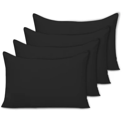 Pamposh Pillow Cases 4 Pack Standard Size 50 X 75 cm Double Brushed Premium Microfibre Envelope Closure Covers Hypoallergenic Pillowcases Set of (Black, (Pack 4))