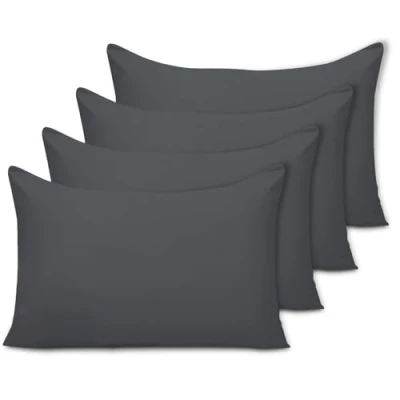 Pamposh Pillow Cases 4 Pack Standard Size 50 X 75 cm Double Brushed Premium Microfibre Envelope Closure Covers Hypoallergenic Pillowcases Set of (Charcoal, (Pack 4))