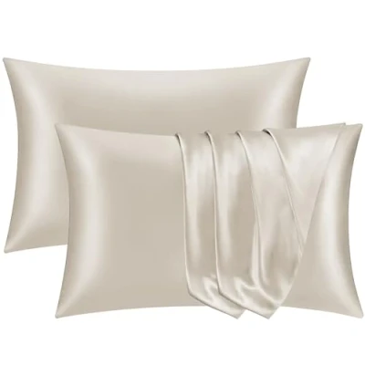 Pamposh Satin Silk Pillowcases For Hair And Skin 2 Pack Standard Size with Envelope Closure (2 Pcs (50 x 75 cm), Khaki)