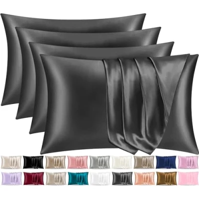 Pamposh Satin Silk Pillowcases For Hair And Skin 4 Pack Standard Size with Envelope Closure (4 Pcs (50 x 75 cm), Charcoal)