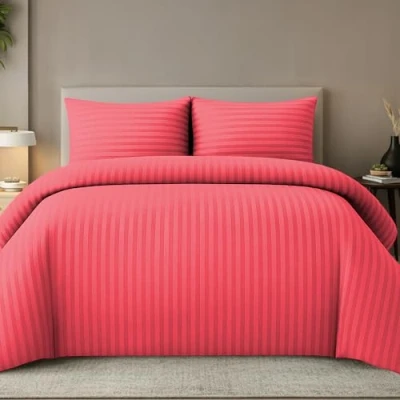 Pamposh Satin Stripe Double Duvet Set Premium Hotel Quality Quilt Cover Bedding Sets Hypoallergenic Ultra Soft Microfiber Bed Linen