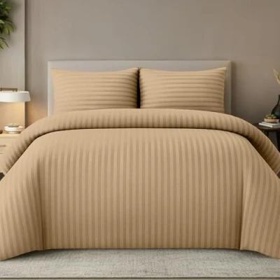 Pamposh Satin Stripe Double Duvet Set Premium Hotel Quality Quilt Cover Bedding Sets Hypoallergenic Ultra Soft Microfiber Bed Linen