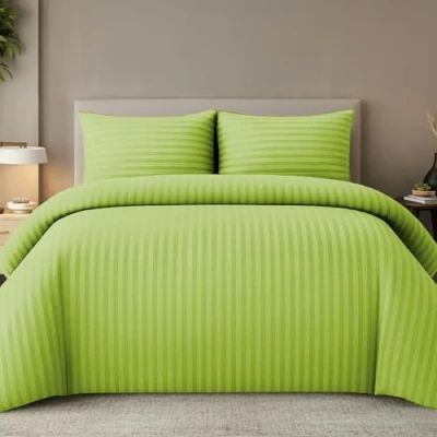 Pamposh Satin Stripe King Size Duvet Cover Sets Premium Hotel Quality Quilt Bedding Hypoallergenic Ultra Soft Microfiber Bed Linen