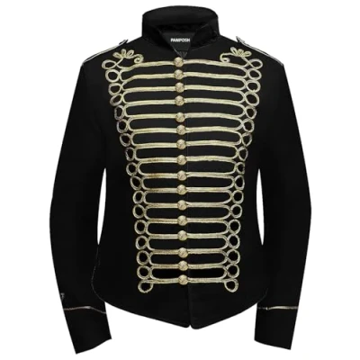Jacket Style - Womens napoleonic lightweight military parade gothic jackets made with premium coton fabric. Closure Type - Metal buttons fastening to the front with high quality gold or silver trimmings. Studs to the front and shoulder straps enhance the beauty. Premium Quality Fabric - Made with high quality coton fabric on the outer and polyester satin lining on the inner. Design - High quality buttons and ribbons that will last long. Long sleeves design. Applications - Great for musicians, dancers, singing bands, marching bands to wear whilst performing. Suitable for birthday, thanksgiving, halloween, christmas and theme parties gifts.