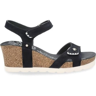 Panama Jack Women's Marino / Navy Ankle-Strap Sandals Wedge sandals.Navy suede.Velcro Closure.Leather lining. Heel height: 6.50 cm Anatomical insole. Lightweight, flexible, strong and non-slip EVA rubber sole. Made in Spain