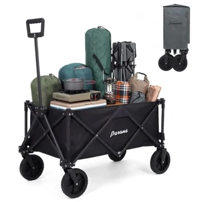 Panana Folding Trolley With Wide Wheels, Foldable Wagon, Portable Camping Cart, Collapsible Trolly Adjustable Handle, Shopping Foldaway for Easy Storage (Black, 150L)