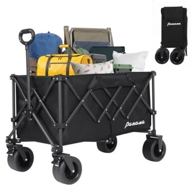 Panana Folding Trolley With Wide Wheels, Foldable Wagon, Portable Camping Cart, Collapsible Trolly Adjustable Handle, Shopping Foldaway for Easy Storage (Black, 230L)