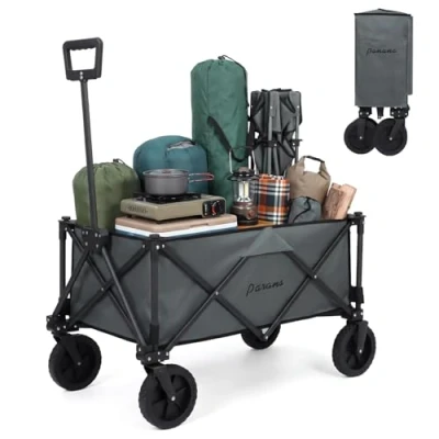 Panana Folding Trolley With Wide Wheels, Foldable Wagon, Portable Camping Cart, Collapsible Trolly Adjustable Handle, Shopping Foldaway for Easy Storage (Grey, 150L)