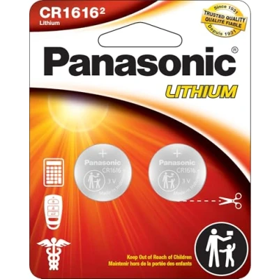 Panasonic CR1616 3.0 Volt Long Lasting Lithium Coin Cell Batteries in Child Resistant, Standards Based Packaging, 2 Battery Pack
