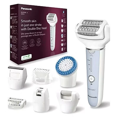 Experience the ultimate in hair removal with the Panasonic 5-in-1 Full Body Epilator Kit, featuring innovative Double Disc Technology for effortless and efficient epilation. This advanced epilator boasts a 90° flexible head and a uniquely designed extra wide head that glides smoothly across your skin, ensuring you can easily reach even the most difficult areas. Whether you’re treating large areas or delicate spots, the extra wide head captures more hairs in a single stroke, leading to quicker and smoother results.