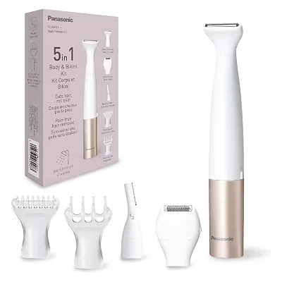 Panasonic ES WM31 5 in 1 Body & Bikini Kit, Women's Hair Remover, Ladies Shavers, Trimmer, Attachments, IPX7 Waterproof, Wet Dry, Battery Powered (1 x AA Required), White Gold