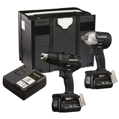 General description The Panasonic EYC242LJ2G31 Twin Pack includes an 18V EY79A3 Smart Brushless Combi Drill and an 18V EY75A8 1/2in Impact Wrench. The combi drill features grip torque control for efficient drilling, while the impact wrench is designed for quick assembly and disassembly with equal torque in both forward and reverse directions. Technical specifications No Load Speed (Combi Drill): 20-530/70-1,800/min Torque Settings (Combi Drill): 18 Torque (Combi Drill): Stalling Low/High 32/12Nm, Instant Low/High 50/40Nm No Load Speed (Impact Wrench): 0-1,000/0-1,500/0-2,500/min Impact Rate: 0-1,900/0-2,900/0-3,600/bpm Max Torque (Impact Wrench): 280Nm Tensile Bolt Capacity: Standard M6-M16, High M6-M12 Compatibility and accessories 2 x 18V 5.0Ah Li-ion Batteries 1 x EY0L82B31 Universal Li-ion Charger (14.4V-28.8V) 1 x T-Loc Carry Case