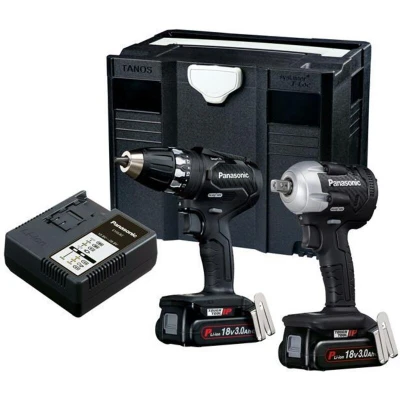 General description The Panasonic EYC242PN2G31 Twin Pack includes a powerful 18V EY79A3 Smart Brushless Combi Drill and an 18V EY75A8 1/2in Impact Wrench. The combi drill features grip torque control for efficient drilling, automatically adjusting between fast rotation for lighter tasks and higher torque for heavier loads. The impact wrench is designed for quick assembly and disassembly, providing equal torque in both forward and reverse directions. Technical specifications No Load Speed (Combi Drill): 20-530/70-1,800/min Torque Settings (Combi Drill): 18 Torque (Combi Drill): Stalling Low/High 32/12Nm, Instant Low/High 50/40Nm No Load Speed (Impact Wrench): 0-1,000/0-1,500/0-2,500/min Impact Rate (Impact Wrench): 0-1,900/0-2,900/0-3,600/bpm Max Torque (Impact Wrench): 280Nm Tensile Bolt Capacity: Standard M6-M16, High M6-M12 Bit Holder: 1/2in Square Drive with Ball Detent Compatibility and accessories 2 x 18V 3.0Ah Li-ion Batteries 1 x EY0L82B31 Universal Li-ion Charger (14.4V-28.8V)