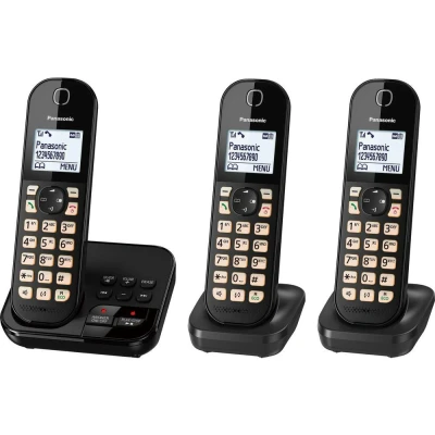 Nuisance call blockingDon't let cold calls disturb your peace. With the Panasonic KX-TGC463EB Cordless Phone, you can block nuisance calls from up to 50 specific numbers, such as telemarketers. And you can also block numbers by their type. 3 handsetsYou can place 3 handsets around the house, so there will always be someone nearby to answer an important call. Large displaySee who's calling on the 1.6" display. The backlit keys make dialing clearer and easier. Record messages on answering machineThe answering machine can record up to 30 minutes of voice messages, so you won't miss out on any crucial information. Speakerphone functionManage to prepare dinner while catching up with your friend - you can place the handset upright and call hands-free thanks to the speakerphone function.ECO modeSelecting the ECO button is a clever way how to cut the power consumption. Plus on a full charge, the phone can be left unused for up to 300 hours.