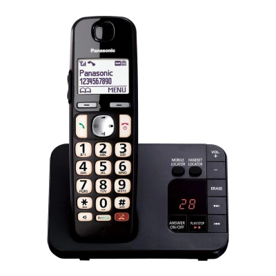 Automated call blockThe Panasonic KX-TGE820EB Cordless Phone offers automatic nuisance-call blocking so you won't be disturbed by those annoying automated telesales calls.Easy to read & hearThis DECT cordless telephone has big buttons and a clear LCD backlit display, so you can easily see who's calling and dial the numbers you need.It's also hearing-aid compatible with enhanced volume, so you'll be able to hear the person you're talking to clearly. You can adjust the sound quickly any time with the volume buttons on the side of each handset.Answering machine & phonebookThe answering machine offers up to 40 minutes of recording time - more than enough for important messages. And the 150-contact phonebook means you can save all your numbers for easy access later.__________________________________Please note: You must subscribe to a Caller Display service from your network provider for the nuisance call block and caller display features to work. Charges may apply.