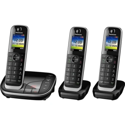 Panasonic KX TGJ423EB Landline Phone Cordless, House phones, Automated Call Blocker, Answer machine, Colour Display, Triple Handset Black