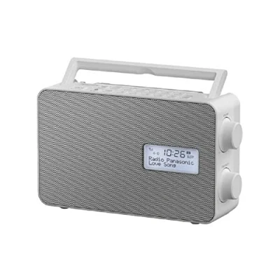Panasonic Radio DAB/DAB+ RF D30BTEG W I FM/DAB/DAB+ Bluetooth USB 10 preset buttons IPX4 clock Function, alarm clock, timer Mains or Battery Operated White Handle French Version