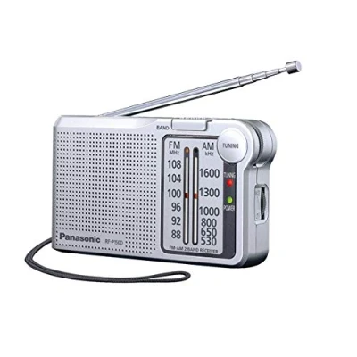 Panasonic RF P150DEG S Pocket FM/AM Radio with Digital Tuner, Auto Frequency Control, Large Dial Scale, Fluorescent Pointer, Battery Operated, Silver