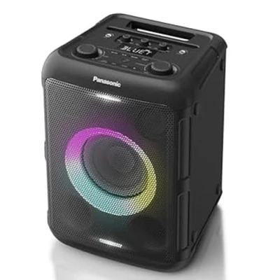 Panasonic SC TMAX45E K High Power Audio System Speaker with Bluetooth, 1000W, Integrated Lights, USB, Optical Input for TV, Guitar Inputs and Microphone Karaoke, Black