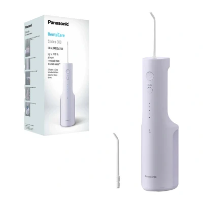 Panasonic Series 300 Oral Irrigator EW DJ26 V311, Water Flosser for Teeth, 200ml, IPX7, 2 Regular Nozzles, 5 Pressure Settings, Travel Accessory, Purple