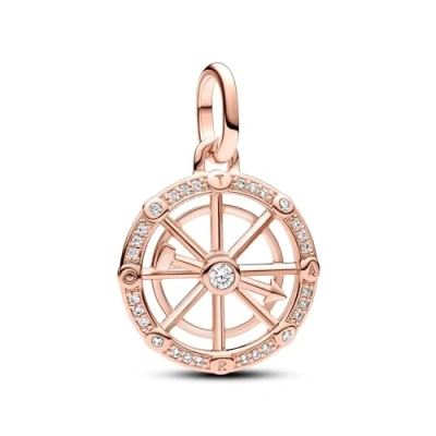 Pandora ME Spinning wheel 14k rose gold plated medallion with clear cubic zirconia