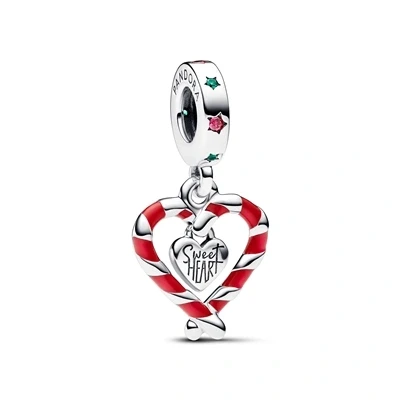 Pandora Moments Candy cane sterling silver dangle with lake green crystal, red cubic zirconia and enamel