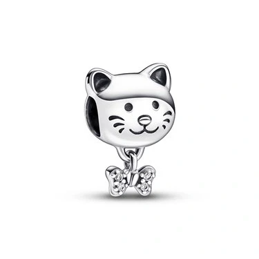 AmazonCompatible with: Pandora Moments bracelets Show your love for your little darling with the cat and bow charm This modern retro sterling silver jewellery is decorated with engraved lines on the face and sparkling pavé on the bow pendant Wear it on a bracelet or charm holder to show the special place of your animal companion in your heart