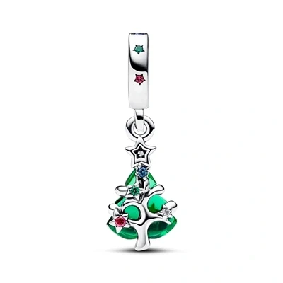 Pandora Moments Christmas tree sterling silver dangle with clear, red cubic zirconia, stellar blue, royal green crystal, crystal and golden enamel