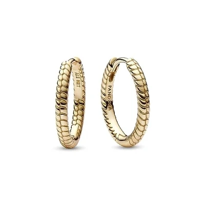 Pandora Moments Snake chain pattern 14k gold plated hoop earrings