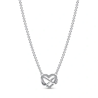 Pandora Moments Sparkling Infinity heart sterling silver necklace with clear cubic zirconia,