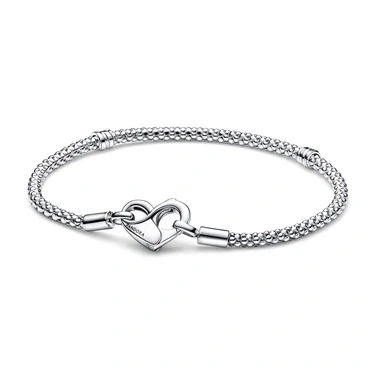 Pandoras iconic charm bracelet has been elevated with this studded chain design. Crafted in sterling silver, this studded chain features a mixture of spheres and pyramids that reflect the light, adding a sleek and polished shine to your look. An openwork heart shaped clasp creates a contemporary finish to this Pandora bracelet. Add up to 14-18 charms from the Pandora Moments collection to reflect your style, personality and favourite things! Sterling silverHeart claspStudded textured chain Make it personal by adding charms from the Pandora Moments collection
