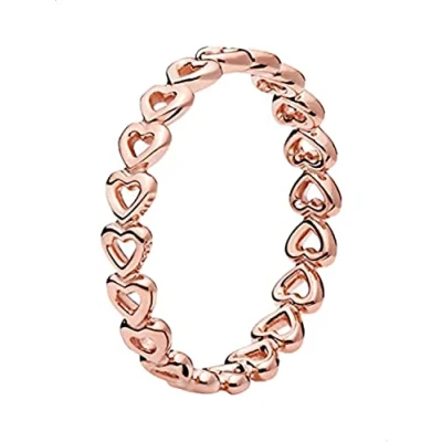 PANDORA Moments Women's 14k Rose Gold Plated Band of Hearts Ring, Size 58, No Box
