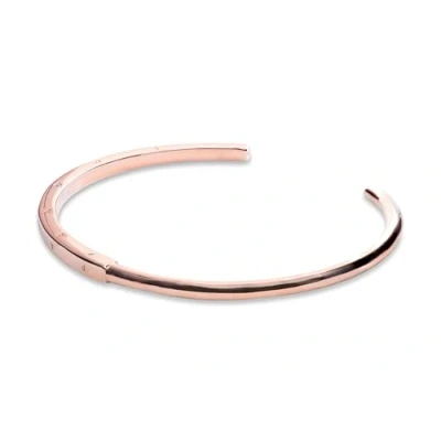 The bangle with a semi-rectangular, semi-round profile is hand-finished in 14 carat rose gold plating The round, polished profile passes into a larger square profile in the centre that carries the Pandora logo on its three outer sides Each end of the bangle contains the Pandora Crown O monogram The bangle has been optimised for optimal wearing comfort and should not be bent or twisted when putting on and taking off The product will not be shipped in a box. This must be purchased separately