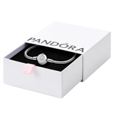 Pandora Signature Sparkling Crown O Snake Chain sterling silver bracelet with clear cubic zirconia, 17