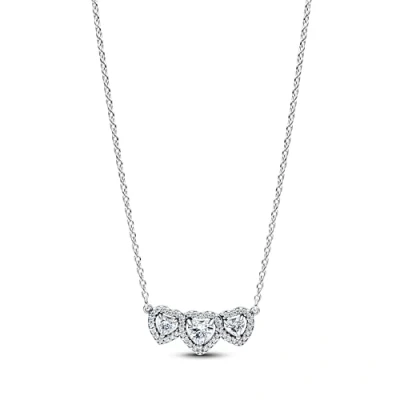 Pandora Silver Halo Heart Trilogy Collier Necklace 45cm