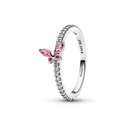 Pandora Silver Pink Sparkling Butterfly Ring 56