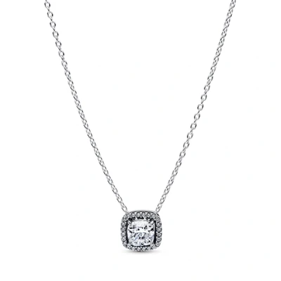 Pandora Silver Square Halo Pendant Collier Necklace