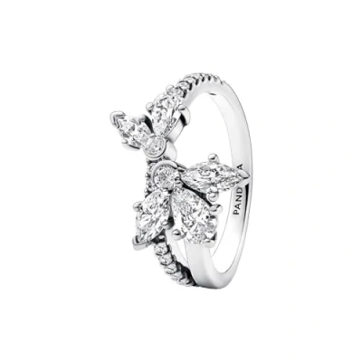Add a flourish of sparkle with this divine Pandora ring. Crafted with sterling silver, this stunning ring features an overlapping design with a floral motif portrayed with clear crystal petals and beautiful pavé crystals adorning the band.Sterling SilverOverlapping styleFloral motifClear crystals