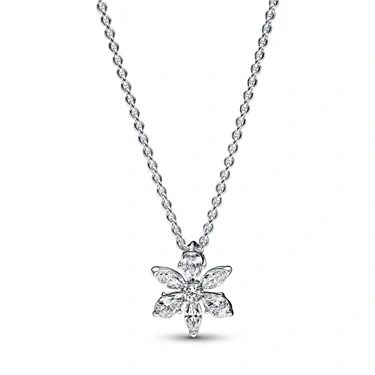 Celebrate the beauty of nature with this sparkling flower necklace from Pandora. The perfect gift for any occasion, this timeless necklace features a linked chain crafted in sterling silver. A blooming floral pendant has been created with sparkling clear crystals with teardrop petals and a sparkling round centre. Something they'll wear again and again. Sterling silver Crystal details Inspired by flowers Length: 45cm Measurements: Depth:4.4mm Height:13.7mm Width:11.8mm
