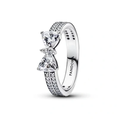 Lift your look with this pretty ring from Pandora! Crafted with sterling silver, this double band ring is crafted with sterling silver and has been adorned with sparkling white crystals and features a white crystal bow motif. Sterling silver White pavé crystals Crystal bow motif Double ring design