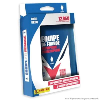 Discover the first officially licensed Panini album dedicated to the French Olympic and Paralympic team! This tin box contains 10 sleeves (60 stickers) + 2 limited edition cards. 461 stickers, including 84 special effects and lots of information are to be found in this already historic collection!, Manufacturer: Panini