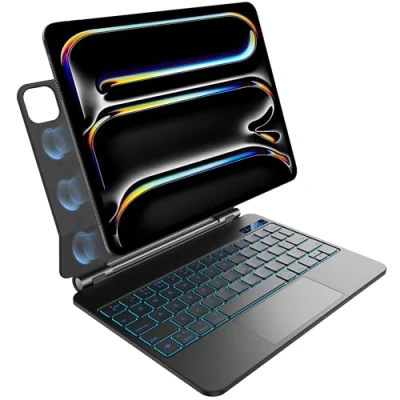 【Compatibility】The keyboard is Only compatible with iPad Pro 11 inch M5 2025 & M4 2024 (A3006, A2837, A2836),Please Check the bottom of your ipad‘s back,ensure your iPad's model number Axxxx before purchasing.NOTE:This keyboard NOT for iPad Air or iPad Pro 11 inch 4th,3rd,2nd,1st generation. 【Strong Magnetic Attachment】Featuring a powerful magnetic design, this keyboard is incredibly easy to install. The strong magnets ensure a secure connection, transforming your iPad into a laptop-like experience in seconds. Enjoy quick Bluetooth connectivity that allows you to set up and start typing anywhere, turning your iPad into a portable workstation whenever you need it 【High-Sensitivity Touchpad】The integrated touchpad features high sensitivity and supports multi-touch gestures, allowing for smooth navigation and efficient multitasking. Whether you're scrolling through documents or using gestures for shortcuts, this touchpad enhances overall productivity 【Customizable Backlighting】Experience seven distinct backlight colors, allowing you to choose the perfect hue to match your mood or workspace. With three adjustable brightness levels, you can easily set the ideal illumination for any environment, whether you're working late at night or in a bright office 【Efficient Shortcut Keys】Featuring specialized shortcut keys, this keyboard simplifies access to essential functions such as volume control, media playback, and screen brightness adjustment. This thoughtful design helps you work faster, giving you more time to focus on what really matters 【Smart Power Management】Designed with energy efficiency in mind, the keyboard automatically wakes up when you start typing and goes into sleep mode when not in use. This intelligent power management extends battery life significantly, ensuring that your keyboard is always ready when you need it. 【Reliable Wireless Connectivity】Enjoy a stable wireless connection that pairs effortlessly with your devices, allowing you to work freely without the clutter of wires.