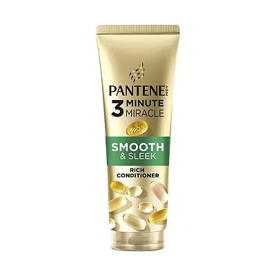 Pantene Pro-V Smooth&Sleek 3 Minute Miracle Conditioner delivers mask-like nourishment in a daily conditioner, instantly repairing dry, frizzy hair without weighing it down. With an ampoule-infused Pro-V formula, it transforms dull, damaged hair into shinier, stronger locks in just minutes.