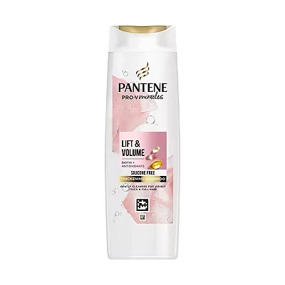 Pantene Pro-V Miracles LiftNVolume Thickening Shampoo with Biotin is a silicone-free formula that strengthens thin, flat hair, making it visibly thicker and fuller in just one use. Enriched with biotin, antioxidants, and 3x more Pro-V than the repair shampoo, it’s ideal for daily care when used with the full LiftNVolume routine.