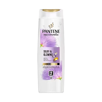 Pantene Silky&Glowing Shampoo with Biotin&Keratin Reconstruct 400ml nourishes and repairs dry, damaged, or highlighted hair, transforming it into soft, silky strands. Suitable for daily use, it’s part of a complete hair care regimen for radiant, healthy-looking hair.