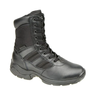 Step into superior performance and convenience with the Magnum Panther 8 SZ combat boots. Featuring a durable leather and textile mix upper, these boots offer resilience and flexibility for demanding environments. The side zip closure with a hook and loop seal provides quick and secure fastening, complemented by lace detailing for a classic look. Inside, a textile lining ensures comfort throughout wear. Engineered for stability and grip, the high traction nitrile rubber sole delivers reliable traction on various surfaces. Complete with Magnum branding, these boots are a blend of durability, functionality, and style, making them a wardrobe essential. - Leather / textile mix upper - Zip closure with hook and loop seal - Lace destailing - Textile lining - High traction nitrile rubber sole - Magnum branding