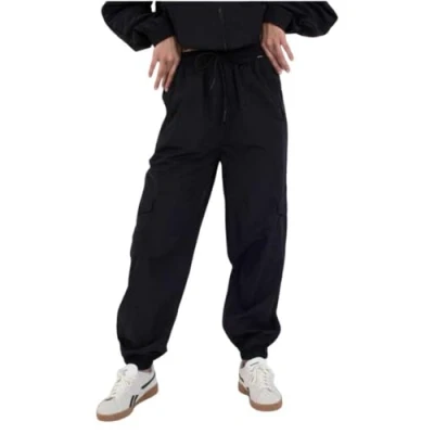 Packable nylon pants Two knee-level pockets Two regular pockets Elastic waistband with drawcord Elastic ankle cuffs